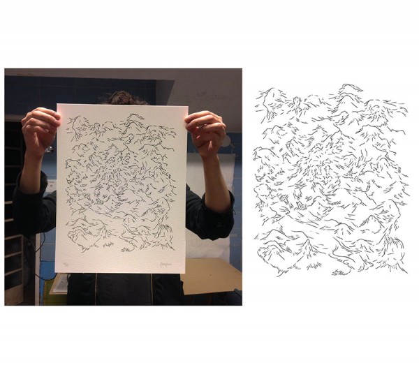 «Tras las sábanas» – 41 x 32 cm. – Serigrafía a un color – 32 x 41 cm – Papel Canson Acrylic 400 gr. – Firmadas y numeradas – Realizadas gracias a la beca Dajaus/Fondo Nacional de las Artes.